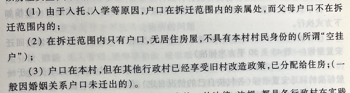 - 虽是本村户口但在安置时不应该给以考虑的人员。